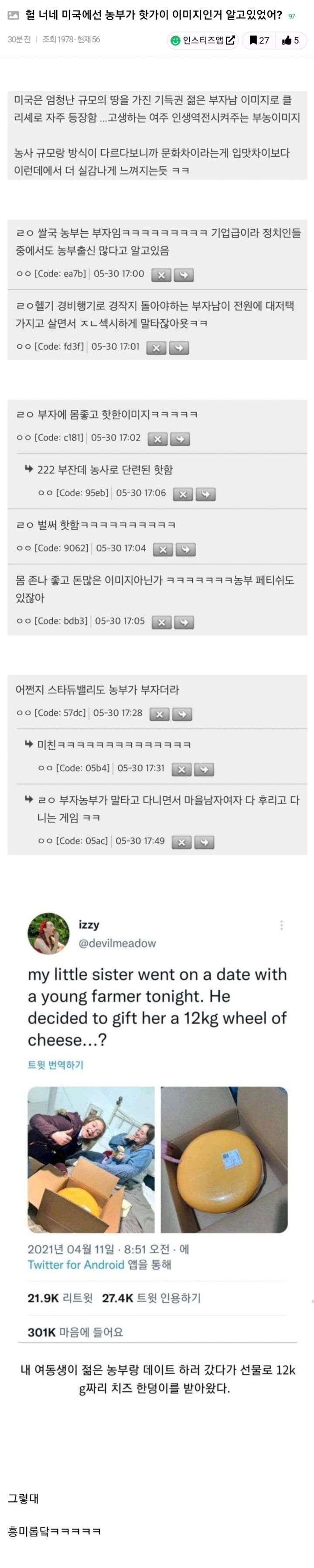 작성자먀용먀용 작성시간 22.08.09 한국 농부= 마른근육이 있을지언정 일단 덩치가 다 마른느낌.. 패션따위 신경쓰지않는다, 효율만을 신경쓴다, 대부분 중장년층