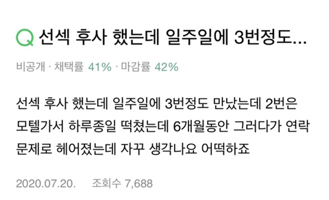 작성자은해 작성시간 22.08.04 선섹후사 할 거면 마음고생이라도 하지 말든가...