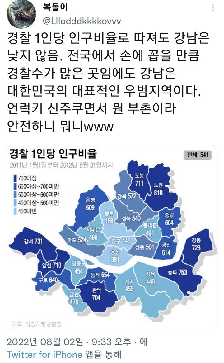 작성자봄날의 햇살 죄수 작성시간 22.08.05 신림사는디 신림 꼴찌네ㅎㅎ강남은 진짜진짜 의외긴 하다..