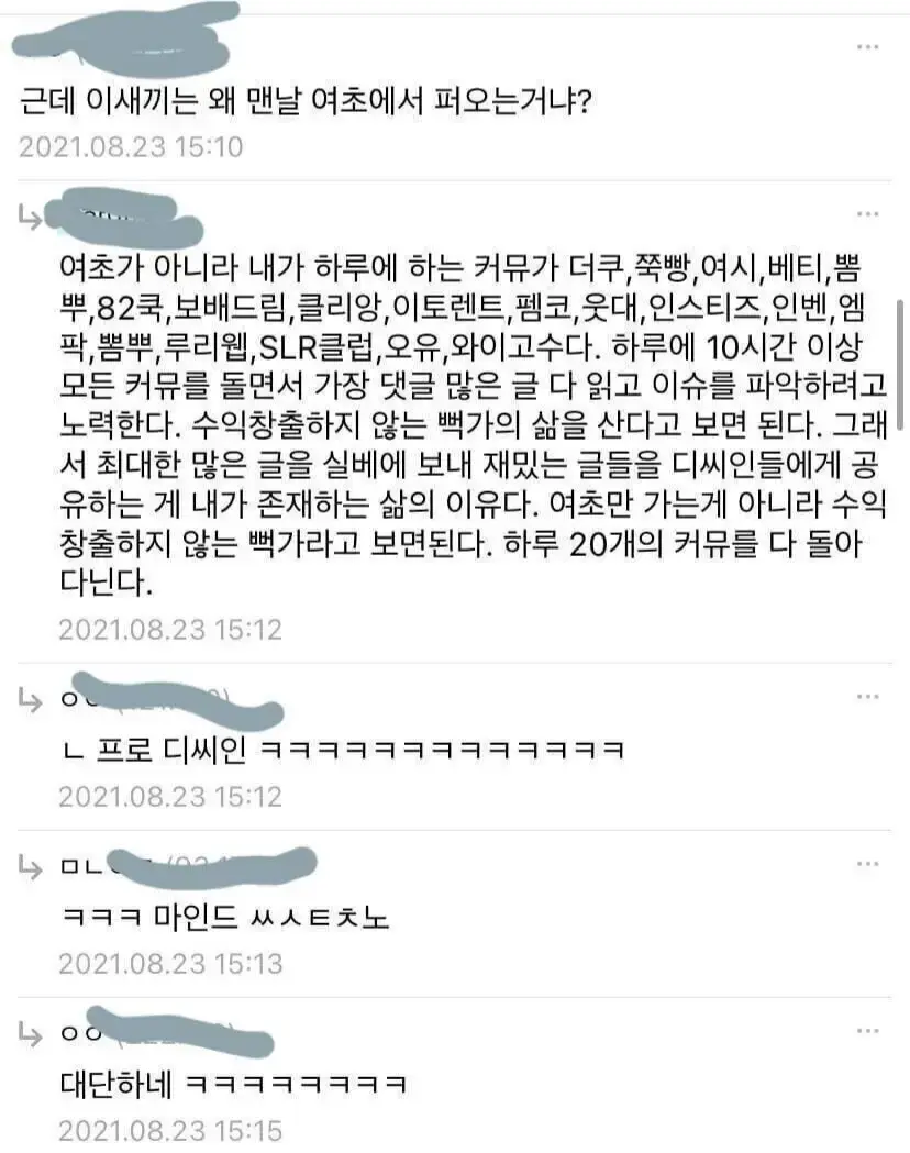 [흥미돋]근데 이 새끼는 왜 맨날 여초에서 퍼오는 거냐? 작성자중복된 닉네임|작성시간22.08.05|조회수20,053 목록 댓글 93 글자크기 작게가 글자크기 크게가 출처 : 여성시대 중복된 닉네임 다음검색 현재 게시글 추가 기능 열기 북마크 공유하기 신고 센터로 신고 댓글 댓글 93 댓글쓰기 답글쓰기 댓글 리스트 작성자령채령채 | 작성시간 22.08.05 광기 작성자아유왜그럴까 | 작성시간 22.08.05 부지런하다 작성자이건진짜없는닉네임 | 작성시간 22.08.05 ㅋㅋㅋㅋㅋ재능아님? 작성자아쿠아 블루 | 작성시간 22.08.05 고생이다 진짜 ㅋㅋㅋㅋㅋㅋ 무급으로 저런 노력을… 작성자보라돌돌이 | 작성시간 22.08.06 개웃겨ㅋㅋㅋㅋㅋㅋㅋㅋㅋㅋㅋㅋㅋㅋㅋ 댓글 전체보기