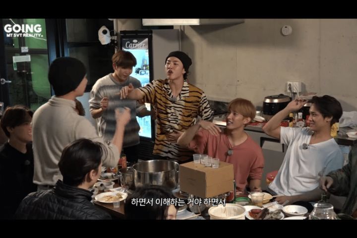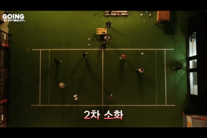 세븐틴 엠티루틴: 노래방-족구-밥-노래방-족구-노래방-족구-노래방-족구.....