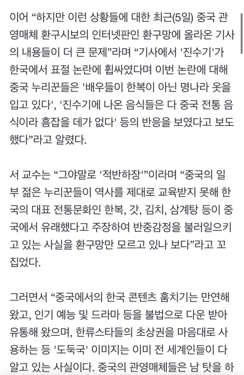 [스크랩] [여시뉴스데스크]'대장금' 표절 문제없다는 中 관영언론...서경덕 “적반하장” 작성자단델리온|작성시간22.08.05|조회수1,405 목록 댓글 5 글자크기 작게가 글자크기 크게가 출처 : 여성시대 방역마스크전문 : https://n.news.naver.com/article/009/0004988775?type=editn&cds=news_edit'대장금' 표절 문제없다는 中 관영언론...서경덕 “적반하장”중국 드라마 '진수기(珍馐记)'의 한국 드라마 '대장금' 표절과 문화 동북공정 논란에 대해 중국 관영 매체가 "일부 한국 젊은이들이 문화를 제대로 이해하지 못해 벌어진 상황"이라고 주장하자n.news.naver.com또또 한국꺼 즈그들꺼라 우기기 시작됨에휴 지겨워 다음검색 스크랩 원문 : *여성시대* 차분한 20대들의 알흠다운 공간 현재 게시글 추가 기능 열기 북마크 공유하기 신고 센터로 신고 댓글 댓글 5 댓글쓰기 답글쓰기 댓글 리스트 작성자할인된파인애플 | 작성시간 22.08.05 진짜 중국 너무 싫어 혐오스러운 민족이야 작성자말이 아닌 행동으로 | 작성시간 22.08.05 진짜 근본없는 나라다 작성자뚱땽 | 작성시간 22.08.05 지겹지도 않냐 배끼기만하는거 느그들것을 좀 만들어보라고 작성자소피아 마일즈 | 작성시간 22.08.05 와 씨҉발҉ 이건 중동애들이 봐도 한심할듯 미친것들이다 진짜 작성자Meem | 작성시간 22.08.05 어휴 표절 안하면 못 만들지? 존나 한심 댓글 전체보기