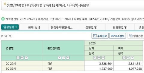근데 저렇게 남녀 미혼 수가 차이 날 수가 있다고?