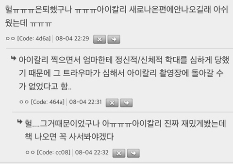 [흥미돋]아직 정식 출간 전인데도 반응 좋은 은퇴한 배우의 자서전 작성자MoMAA|작성시간22.08.05|조회수11,599 목록 댓글 9 글자크기 작게가 글자크기 크게가 출처 : https://hygall.com/485817515 다음검색 현재 게시글 추가 기능 열기 북마크 공유하기 신고 센터로 신고 댓글 댓글 9 댓글쓰기 답글쓰기 댓글 리스트 작성자창원시 | 작성시간 22.08.05 헐 샘..ㅠ.................너무충격이야 그 나도 어릴때 보고 웃었던 어린이 프로그램뒤에 이런모습이..ㅠㅠ 작성자키위는 맛있어 | 작성시간 22.08.05 미친 나도 기대된다 작성자강아지냄새 | 작성시간 22.08.05 헐 아칼 배우였다니.. 작성자mbti맹신론자 | 작성시간 22.08.05 헐 학대 너무 충격적이다.. 작성자한낮의유성 | 작성시간 22.08.05 헉 번역본 나오면 읽고 싶다 댓글 전체보기