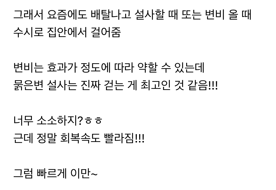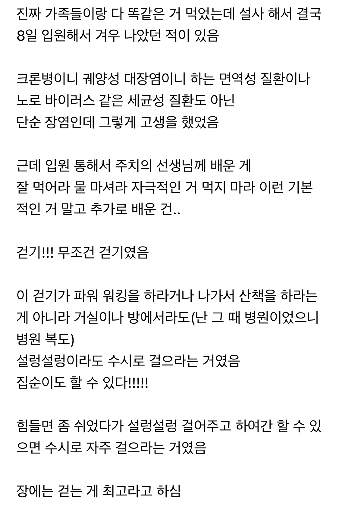작성자(헤헤 죽등가) 작성시간 22.08.06 ㅇㅈ 과민성 대장인데 배아플것같을때도 걸으면 좀 나아짐