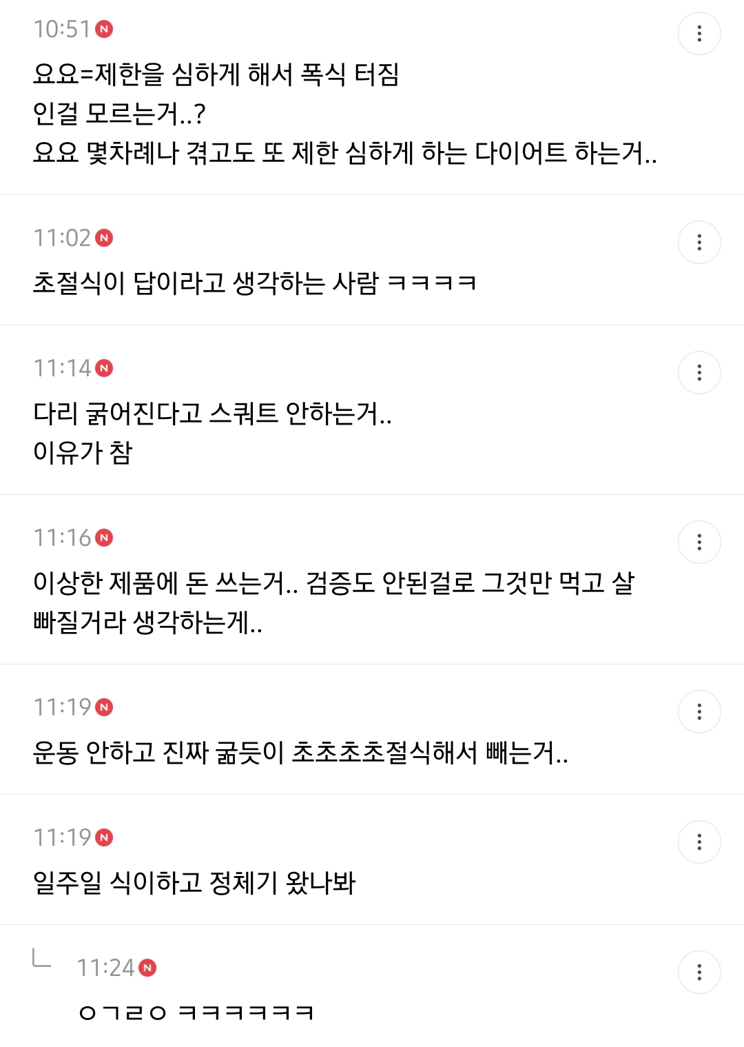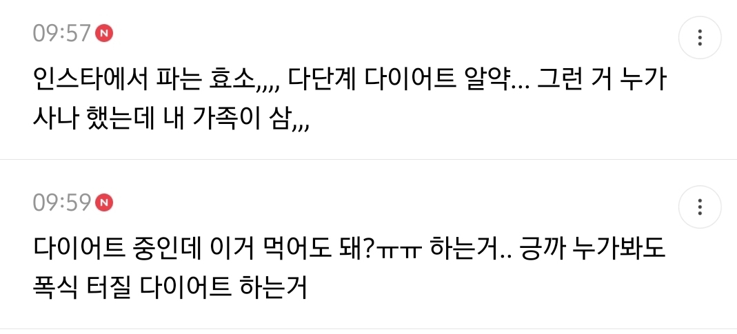 작성자반짝이고싶어라 작성시간 22.08.07 운동안하면서 운동도 하고 식이도 하는 인플루언서가 파는 효소 따라사고 안빠진다고 굶는거....