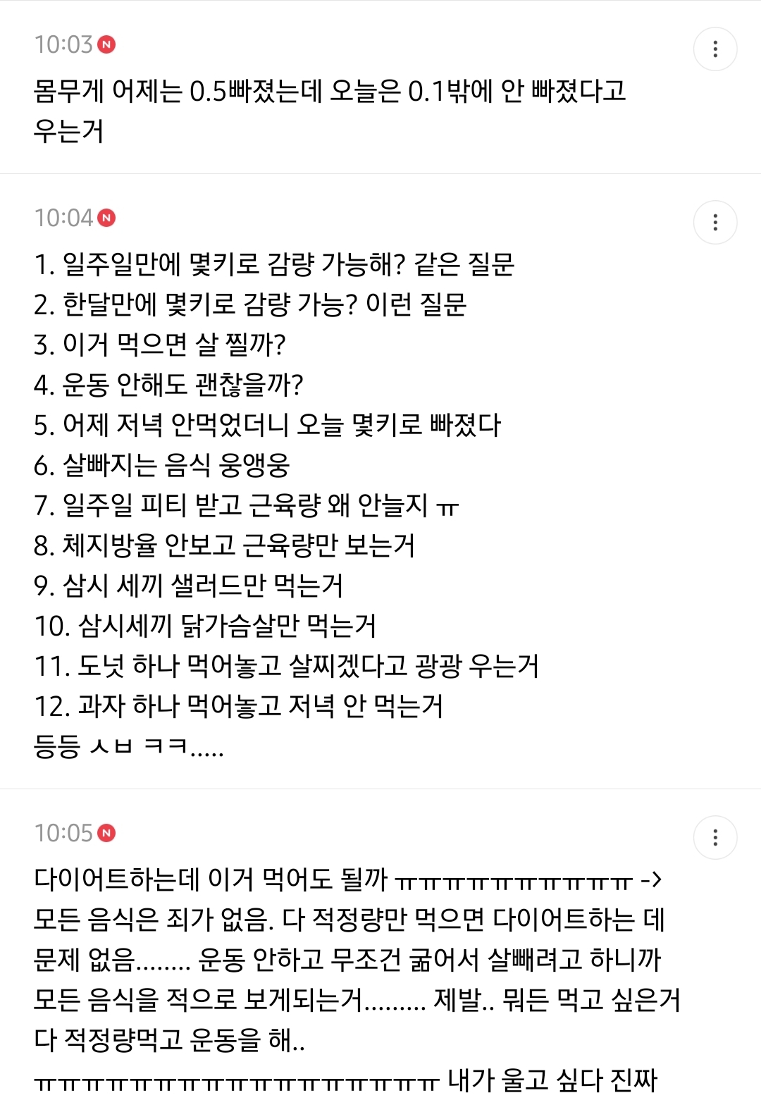 작성자수없는씨박. 작성시간 22.08.07 굶어서 뺀걸 찐으로 빠진거라 생각하는거