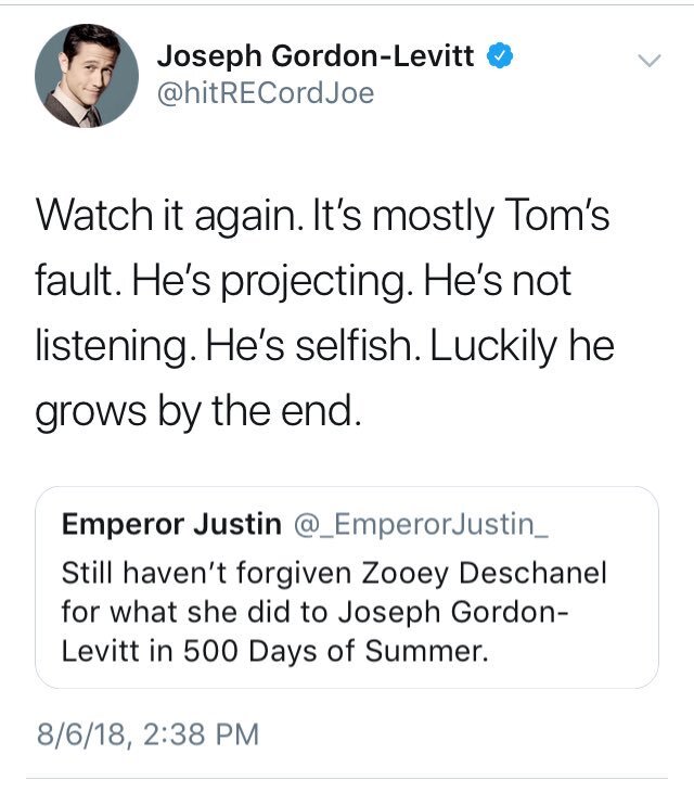 팬의 트윗에 조셉 고든 레빗(톰)이