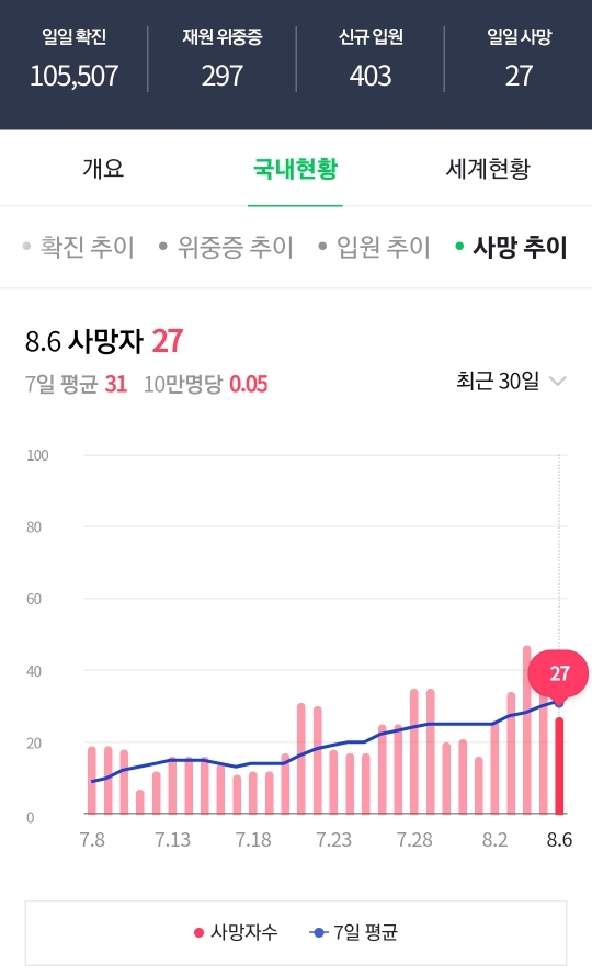 20-30대는 걸려도 사망자는 극히 적음