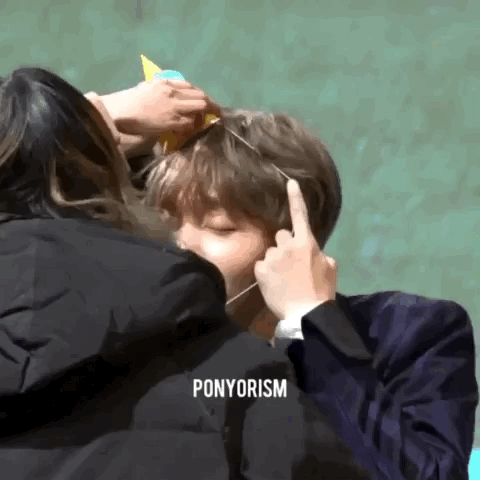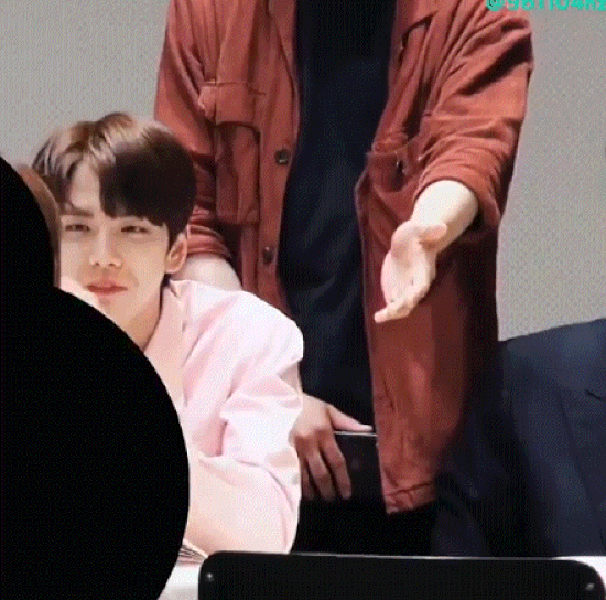 상황: 영훈(분홍옷)이랑 얘기하는 팬한테 빨리 넘어가라고 하는 팬매니저 손 본인이 잡아서 팬 시간 벌어줌