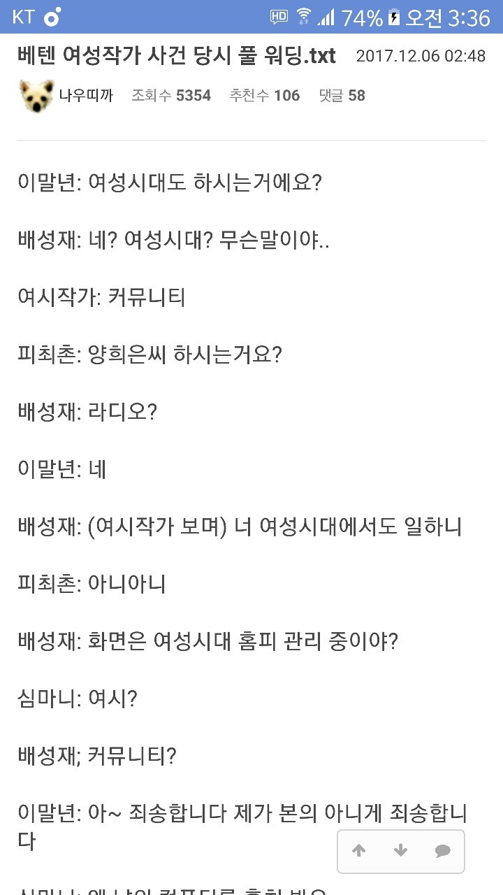 여시에서만큼은 이말년(침착맨) 유머로