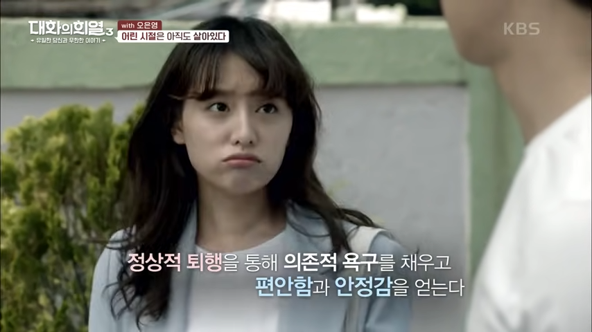 서로 신뢰하는 좋은 관계에서는 정상적 퇴행(ex. 나 오늘 힘들었쪙ㅠㅠ)이라는 것이 있음