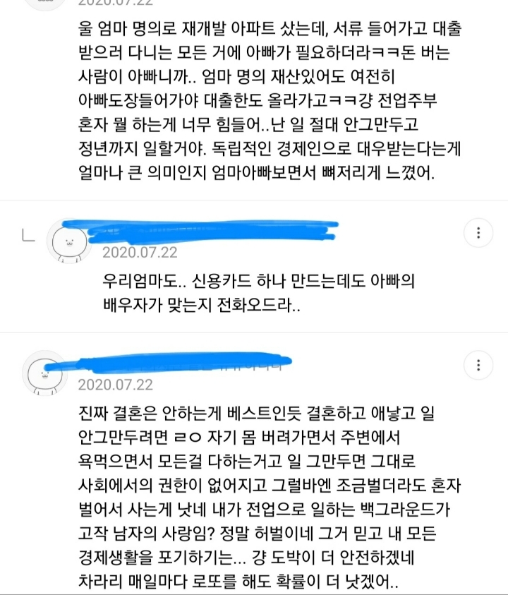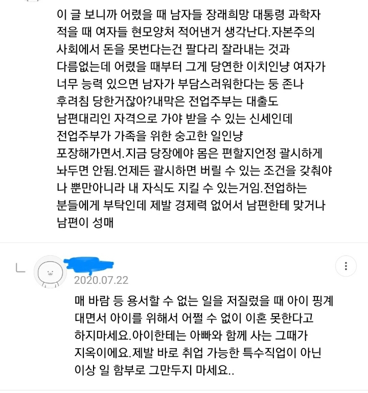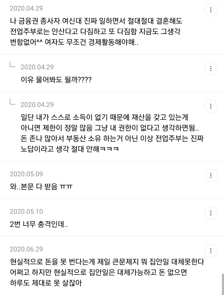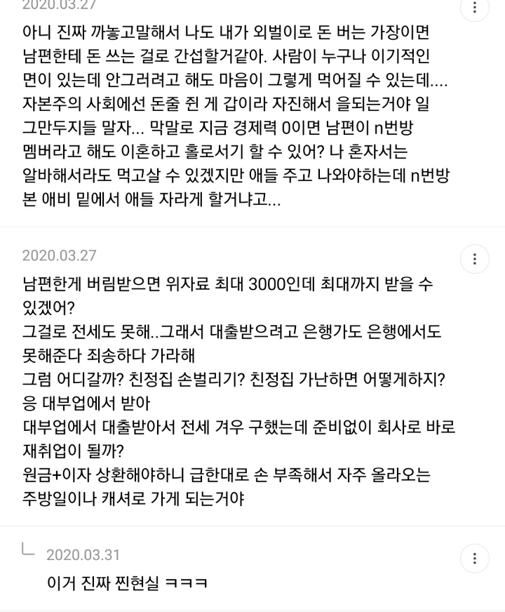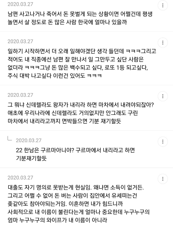 어차피 결혼하면 여자가 육아든 집안일이든 더 하는데 억울해서 내가 왜 돈을 벌어야하냐고.