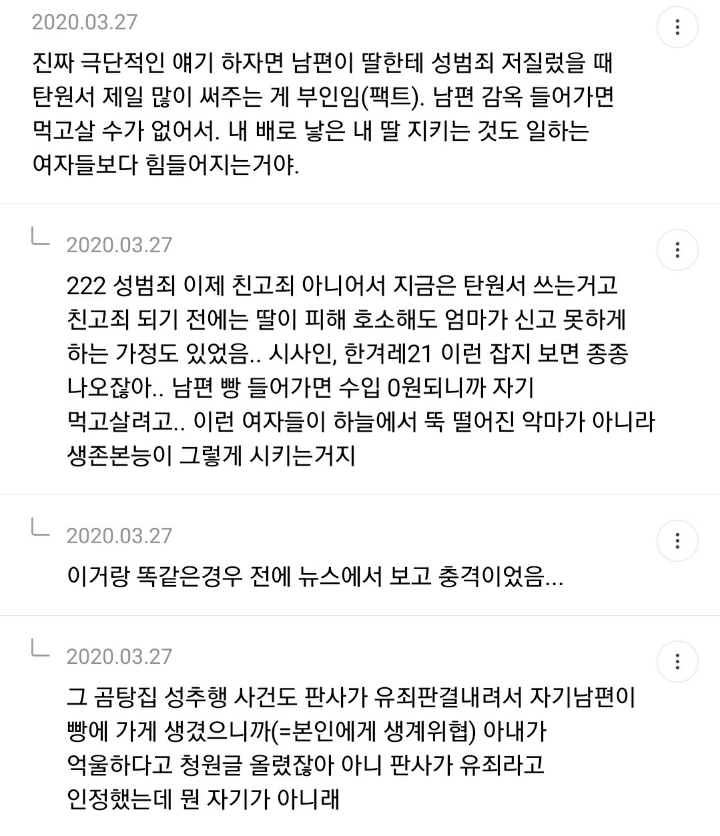 쉽진않겠지만 여성들이 포기하지말고 싸워나가고 그 과정에서 남자들도 목소리를 내고 싸워나가야지 지 자식들 문제인건데 -