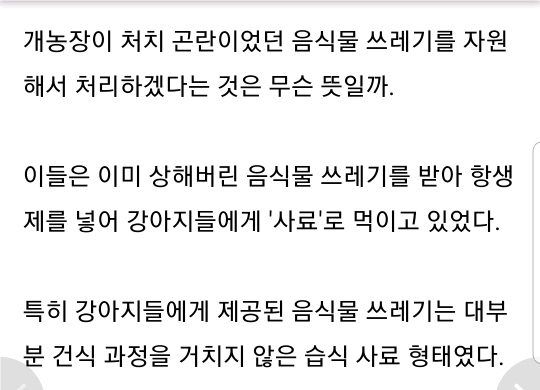 1 한국음식물쓰레기처리 상당 비중 개농장에서 개한테 먹임