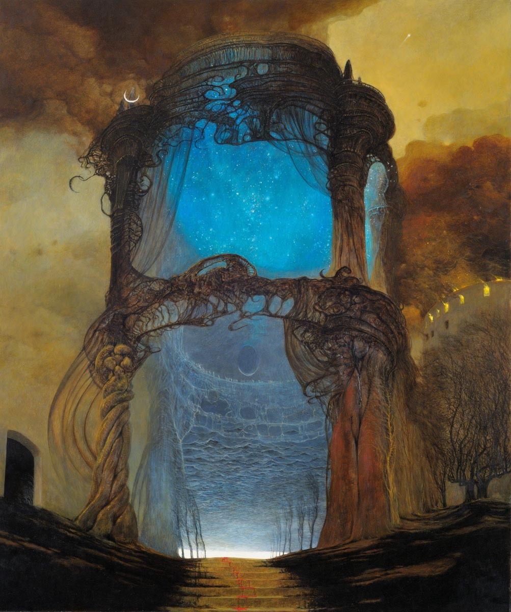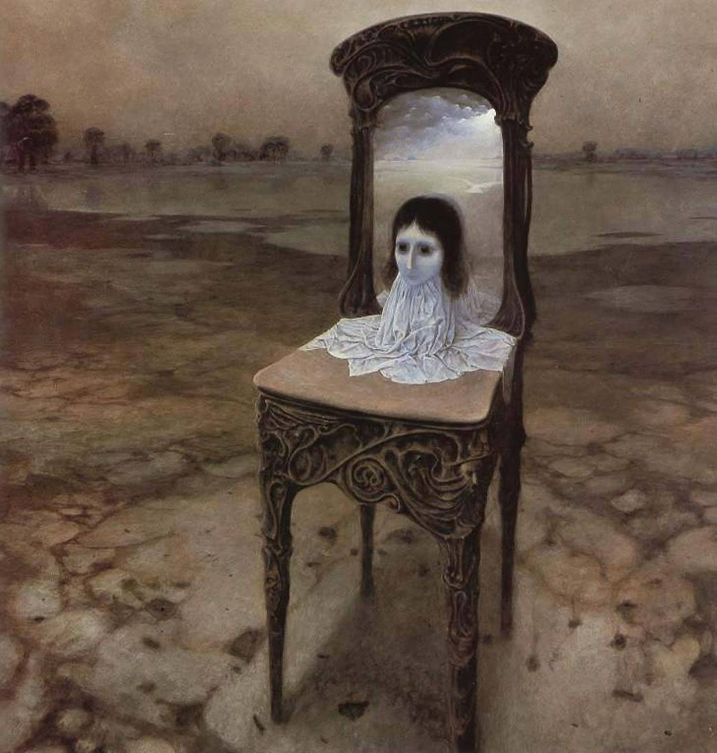 풍경화에서도 그의 특유의 화풍이 드러난다. 음산한 동시에 신비스러운 느낌이 든다. 특히 영롱하게 쓰인 파란색이 눈을 사로잡는다. 백진스키는 파란색을 참 예쁘게 쓰는 화가였다.