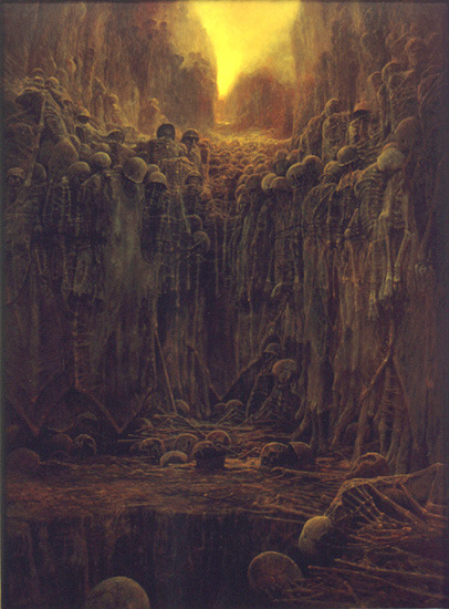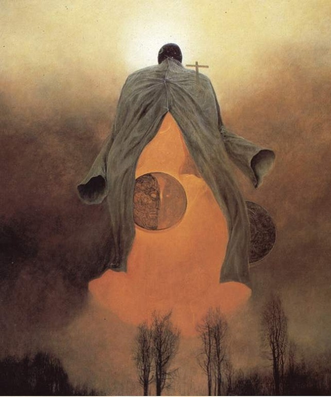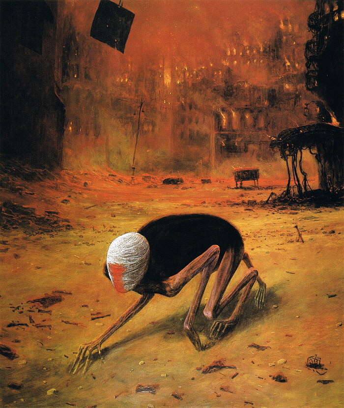 백진스키의 작품이 이토록 어두운 이유는 그의 생애와 시대 배경을 보면 알 수 있다. 백진스키는 폴란드 출신이다. 그는 세계 제2차 대전으로 인해 암울한 유년시절을 보냈다. 당시 폴란드는 나치의 침공으로 독일과 소련의 통치를 받았다. 통치 과정에서 나치는 폴란드 국민에게 야만적인 태도를 보였다. 그들은 무방비 상태의 시가지나 적십자 건물에 무차별적으로 공격했으며, 기차와 피난민 행렬에 비행기 사격을 가하기도 했다.