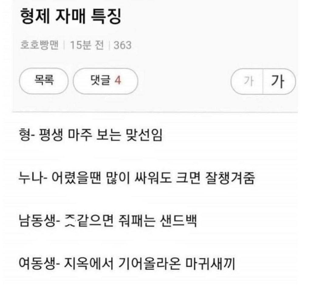 우리집은 반대...ㅋㅋㅋㅋ 오히려 내가 남동생한테 챙김받아...