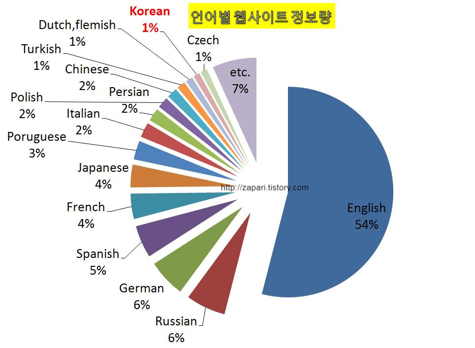 구글에서 한국어로된 정보량은 단 1%