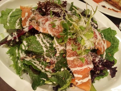 샐러드에 연어도 막 큼직큼직하게 올라가 있고