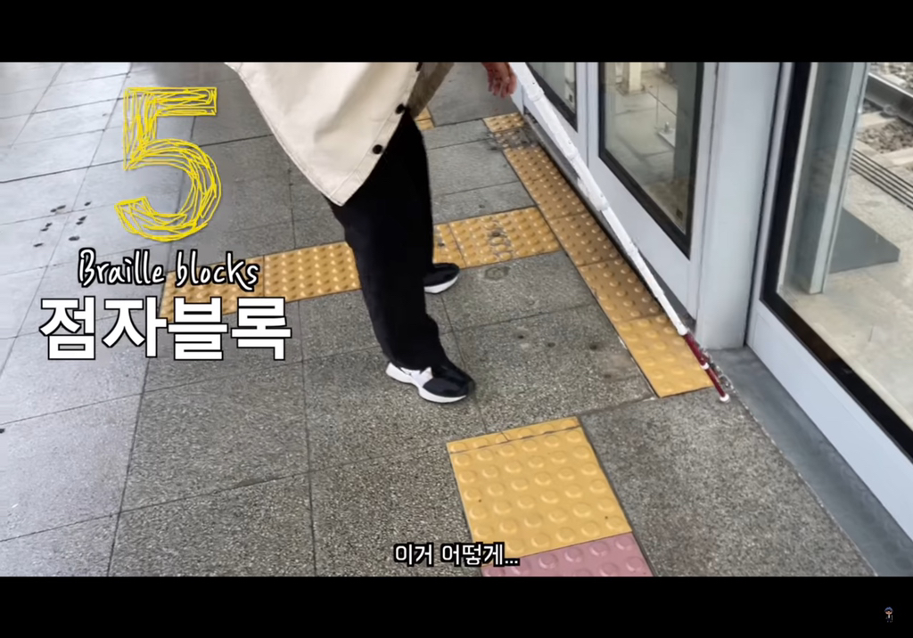 출입구를 따라 이동할 때 점자 블럭이 바닥에 있는데