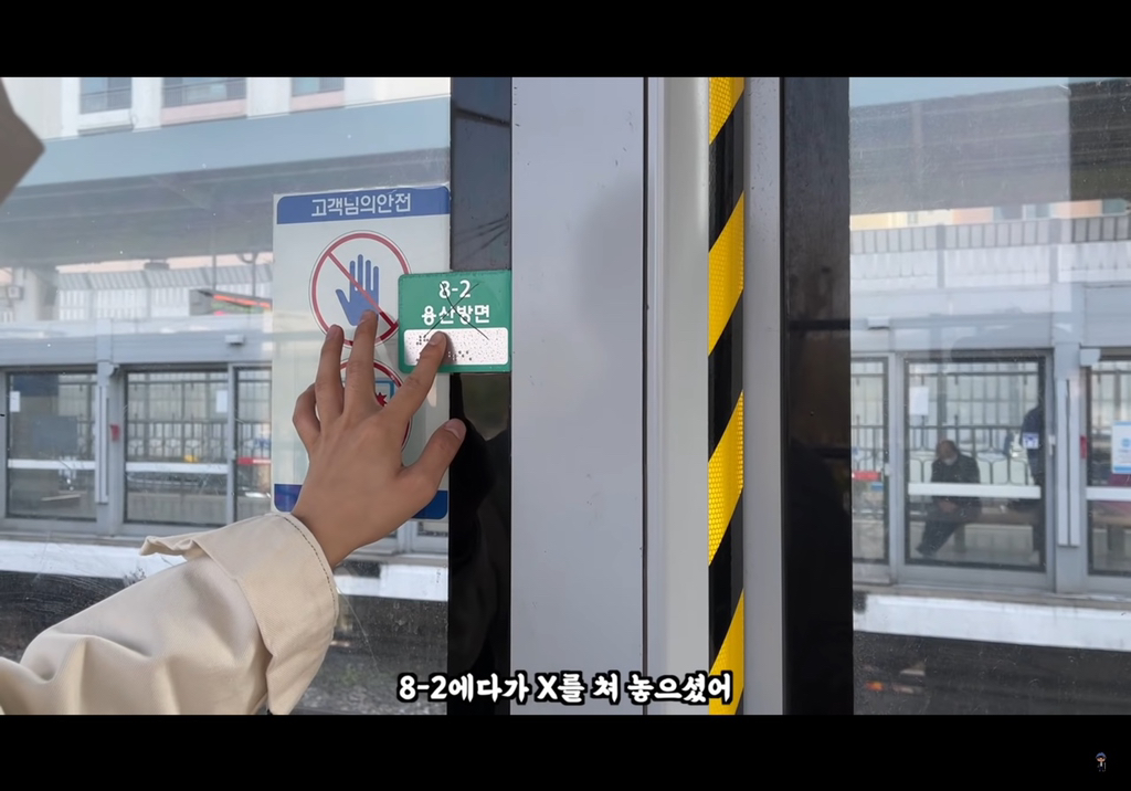 승강장에서는 점자로 타는 곳을 확인해야 함