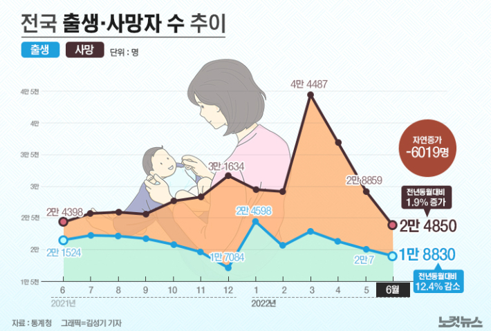 2분기 합계출산율이 0.7명대를 나타낸 것은 사상 처음이다.