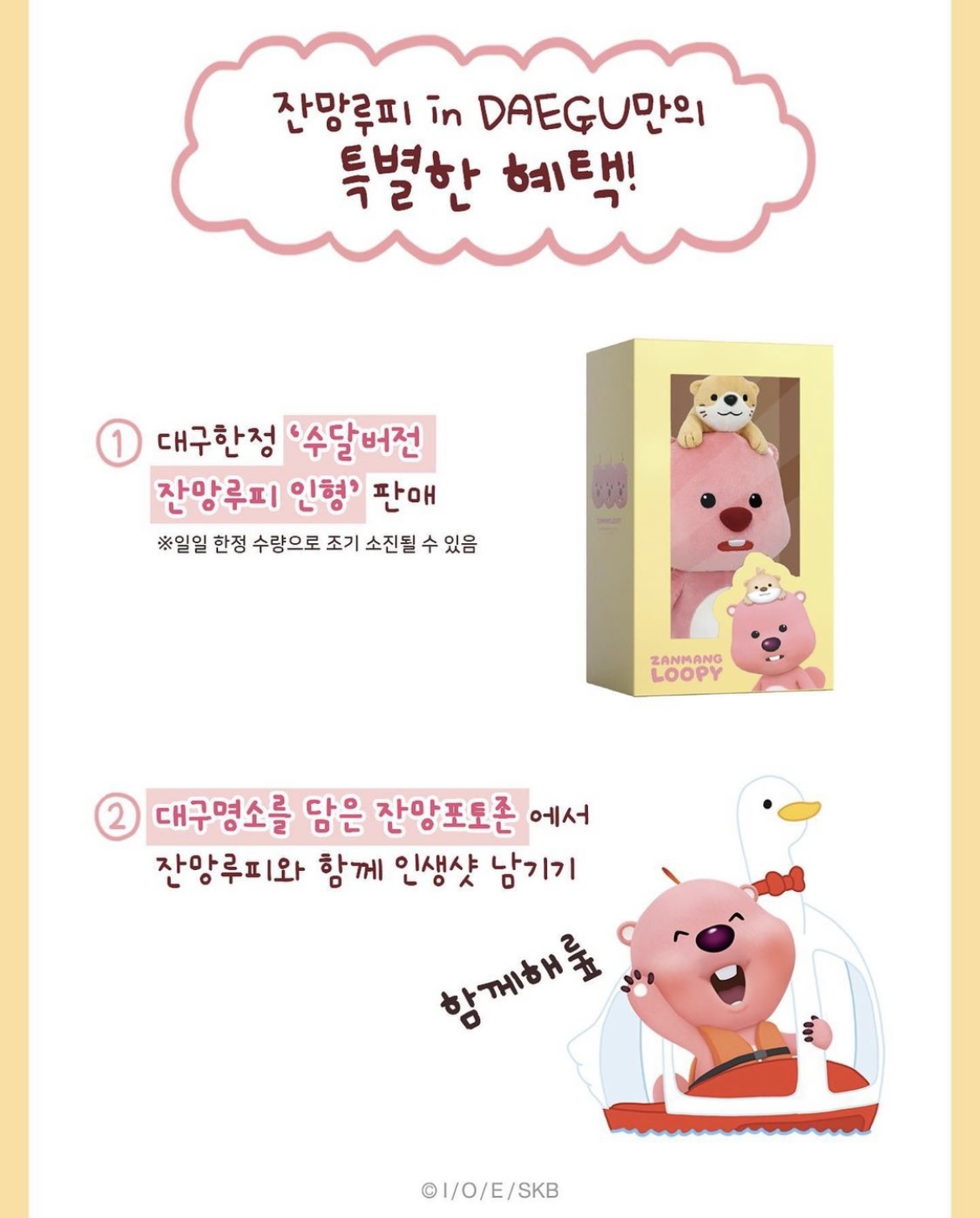 [흥미돋]부산 한정 갈매기 잔망루피에 이어서 대구 한정 수달 잔망루피 나옴 작성자X file|작성시간22.08.24|조회수11,546 목록 댓글 13 글자크기 작게가 글자크기 크게가 출처 : 여성시대 X file 지난번 부산 팝업에서 부산 한정 갈매기 루피에 이어서 이번에 대구 팝업하면서 수달루피 나옴 이건 부산 갈매기 루피 다음검색 현재 게시글 추가 기능 열기 북마크 공유하기 신고 센터로 신고 댓글 댓글 13 댓글쓰기 답글쓰기 댓글 리스트 작성자나빌레라라 | 작성시간 22.08.24 수달이 아이고.... 달쑤 아이가!!!!! 도달쑤 저마이 작앗나 아이고 ㅜㅜㅜㅜ 왜저래귀엽노....(대구 캐릭터 도달쑤) 이미지 확대 작성자antifreeze | 작성시간 22.08.24 개귀여운데ㅜㅠㅠ 살래 작성자짱귀엽지 | 작성시간 22.08.24 어디서하냐고... 작성자레몬딜버터깅 | 작성시간 22.08.24 궁금할 여시들을 위해 찾아왔어~~ 이미지 확대 작성자Doja cat | 작성시간 22.08.24 ㅠㅠㅠ 귀여워 귀여워 댓글 전체보기