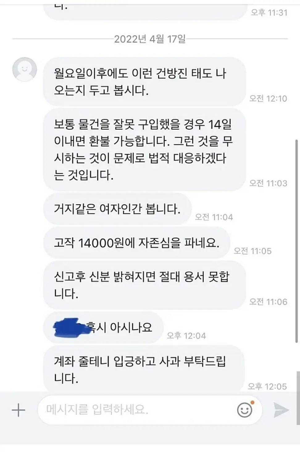 구매자가 판매자한테 보낸 채팅