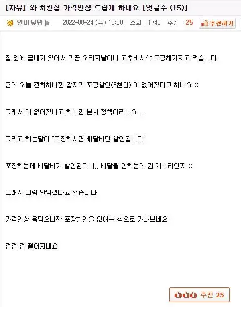작성시간 22.08.25 미친논들이다...ㅋㅋㅋㅋ배달을 안하는데 뭔할인이야 ㅅㅂ
