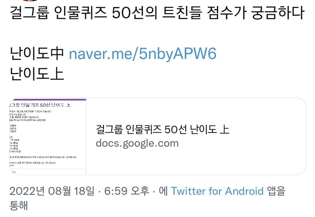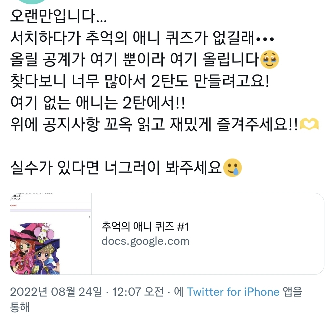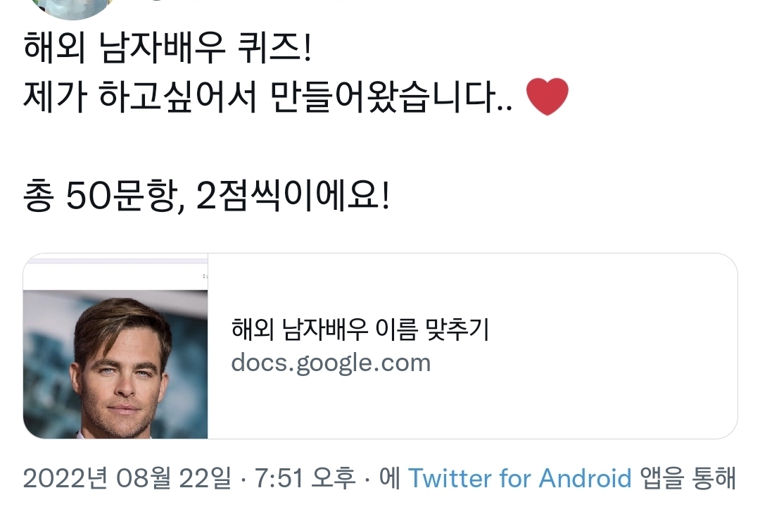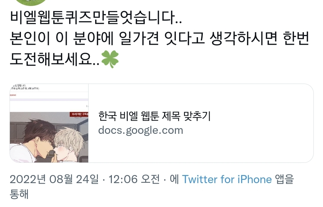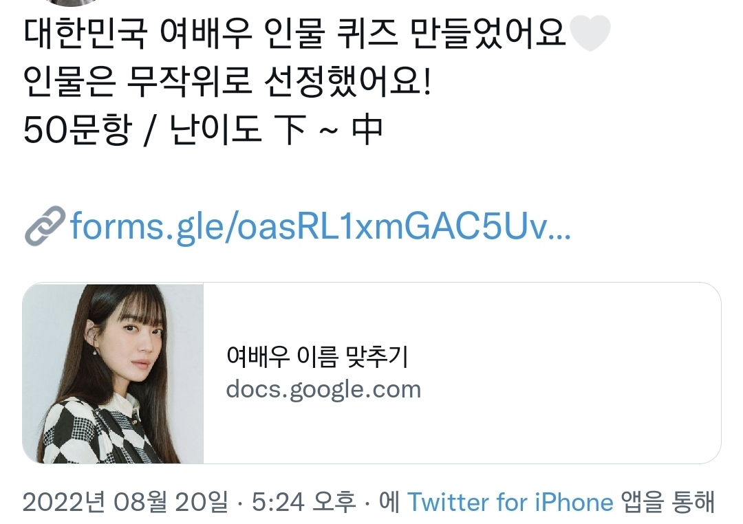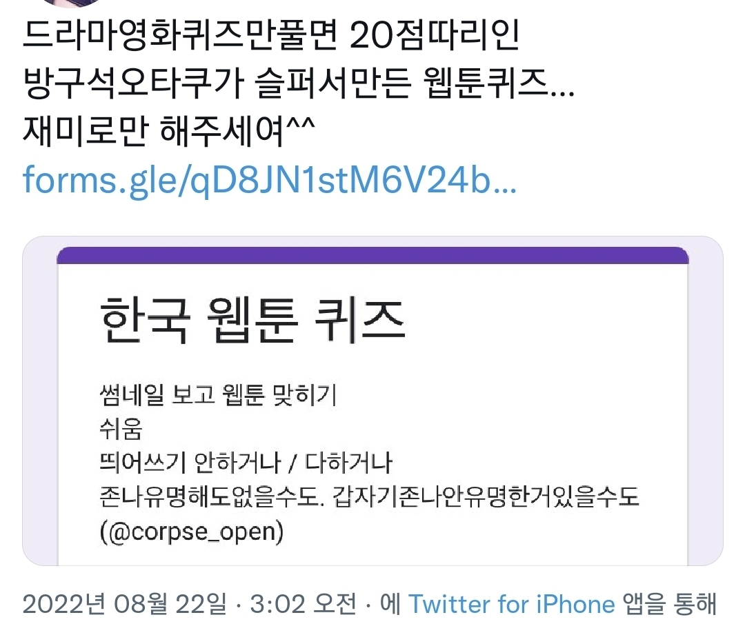 구글폼으로 각종 장르 퀴즈 만들어서 노는 게 유행