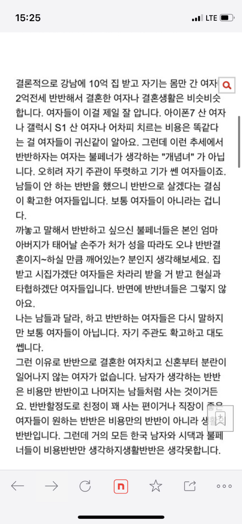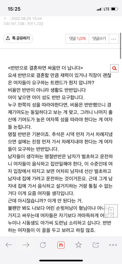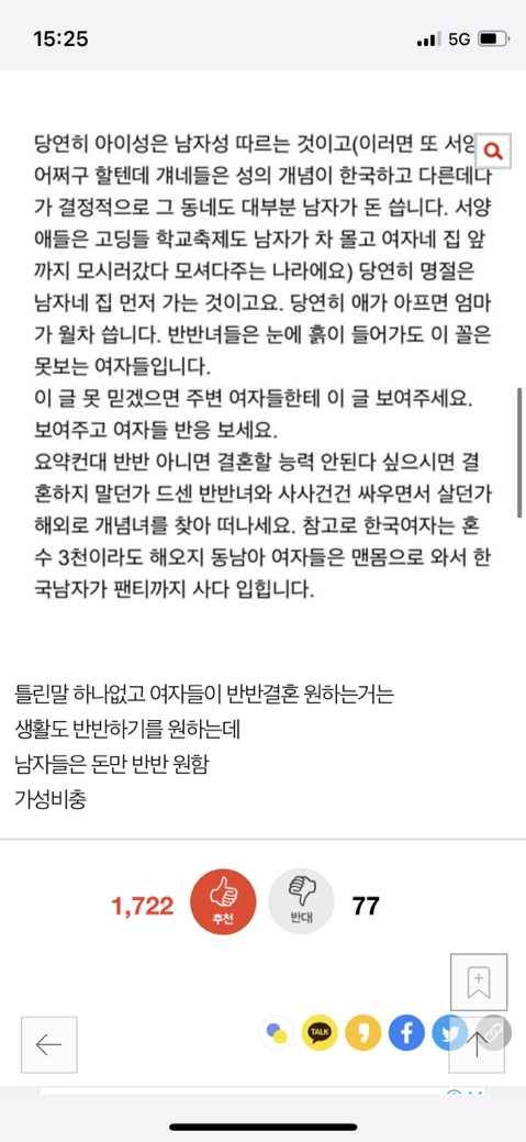 [기타][네이트판] 한남심리를 간파한 반반 결혼 글 작성자느개비 강형욱한테 블로킹 당함|작성시간22.08.26|조회수8,437 목록 댓글 35 글자크기 작게가 글자크기 크게가 출처 : 여성시대 느개비 강형욱한테 블로킹 당함https://m.pann.nate.com/talk/367372292?order=B 다음검색 현재 게시글 추가 기능 열기 북마크 공유하기 신고 센터로 신고 댓글 댓글 35 댓글쓰기 답글쓰기 댓글 리스트 작성자산나빈 | 작성시간 22.08.26 쟤는 좀 똑똑하네.. 작성자오빤키도작으면서 | 작성시간 22.08.26 ㄹㅇ ㅋㅋ 결혼안해~ 작성자비피더ㅓ스 | 작성시간 22.08.26 ㄹㅇ한남들 돈만 반반하길 원하는거지다른 건 다 여자몫임 작성자나파이팅 | 작성시간 22.08.26 ㄹㅇ 엄마 세대처럼 결혼 생활 할 거면 돈이라도 받고 할 거여 ㅎㅎ 작성자제발잘살아보자 | 작성시간 22.08.26 저거 쓴 사람 아군같은데?ㅋㅋㅋㅋ 댓글 전체보기