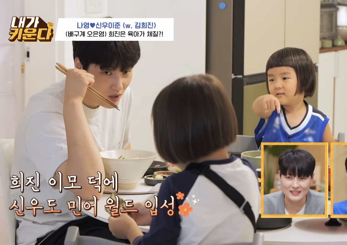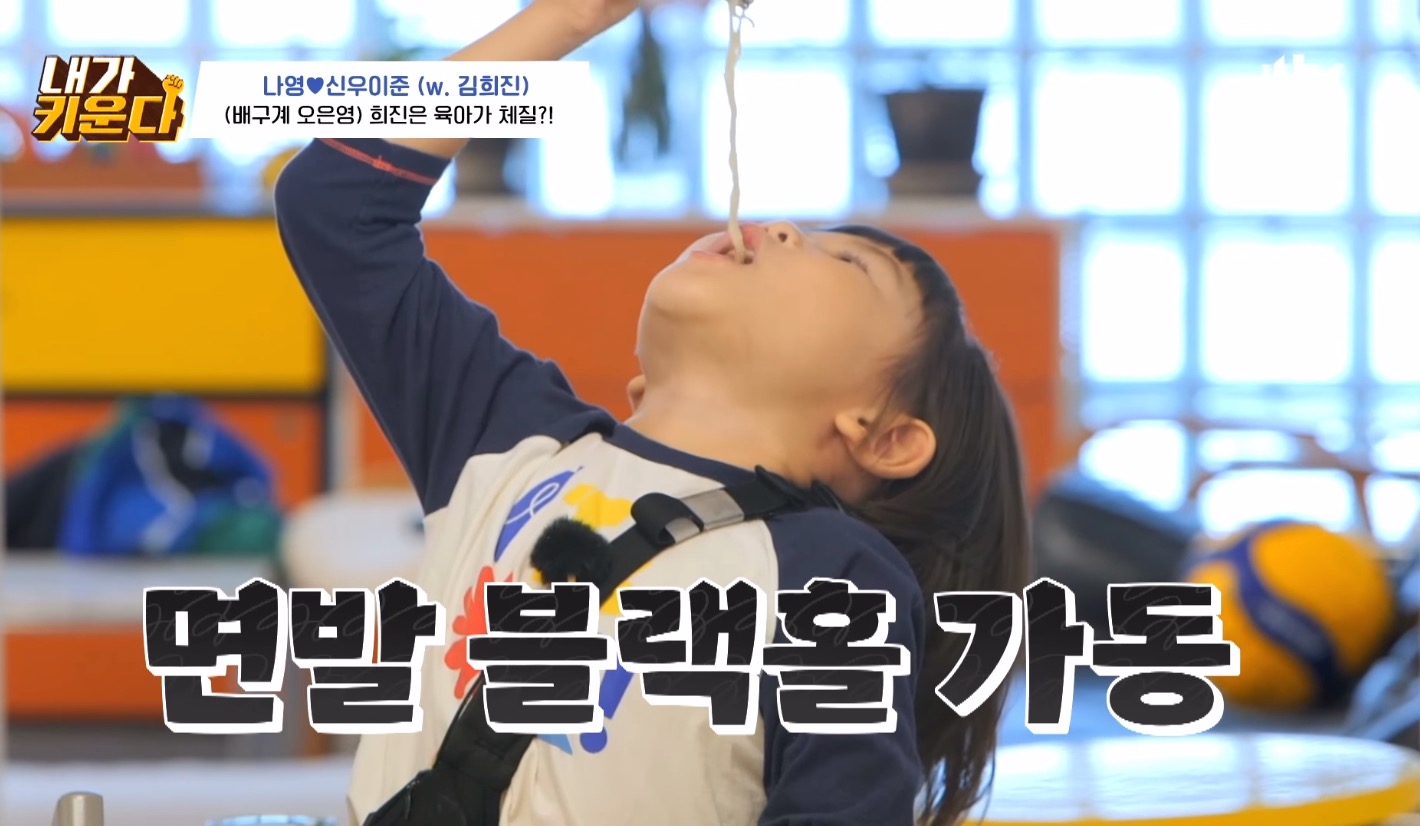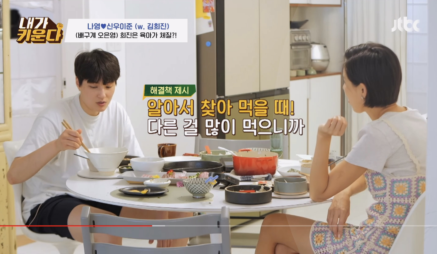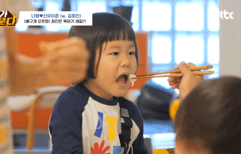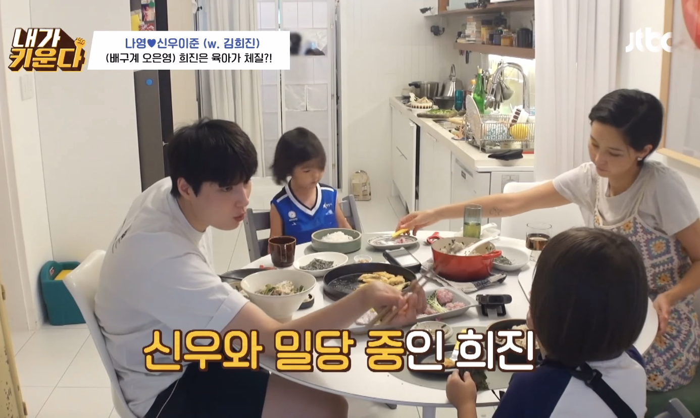 아이들은 한번씩 밥태기가 온다며 본인도 신우 나이때 밥태기가 너무 심해서 시리얼만 먹고 살았는데 유치원 들어가서 폭풍성장했다며 나영언니 도닥여주는 김희진 선수