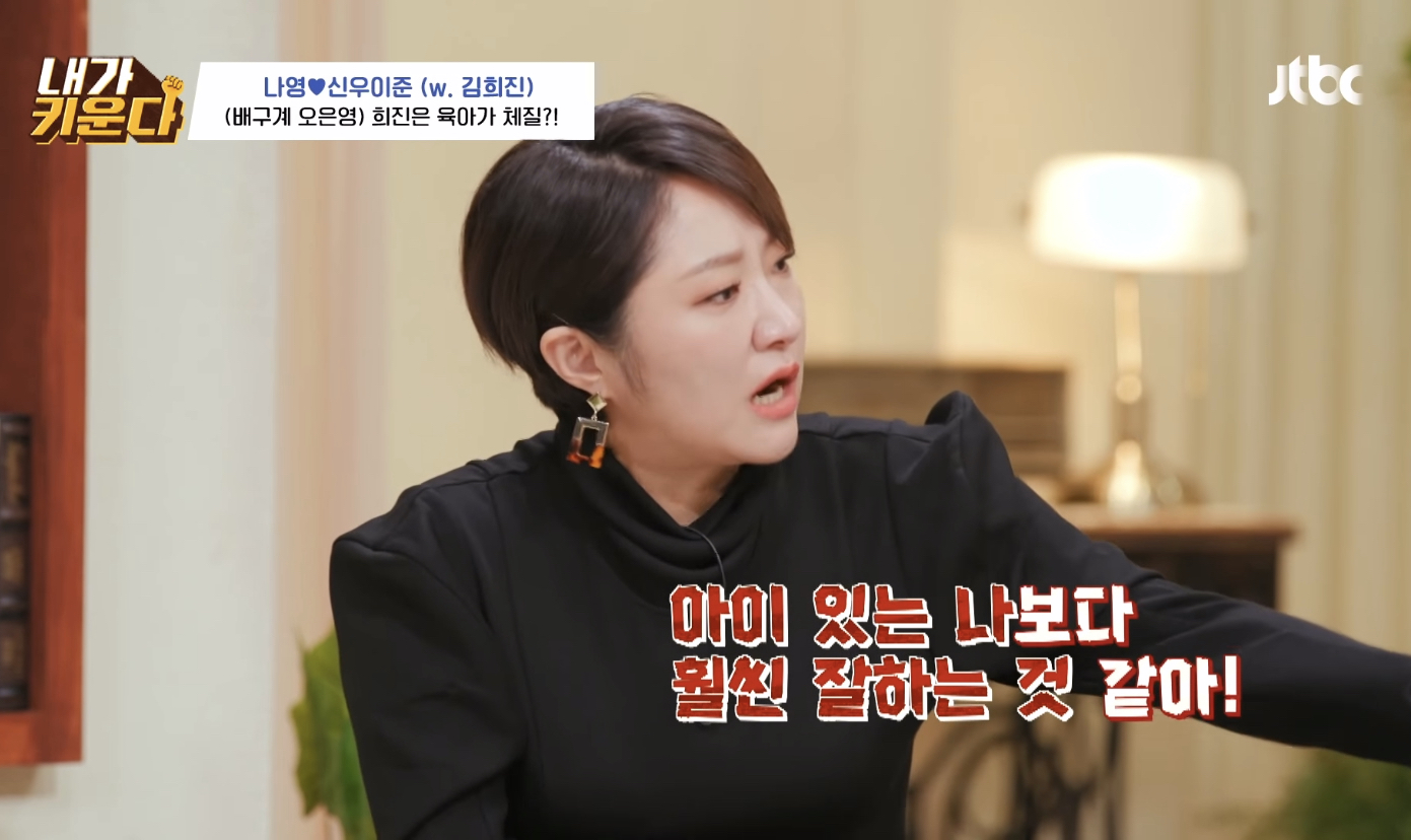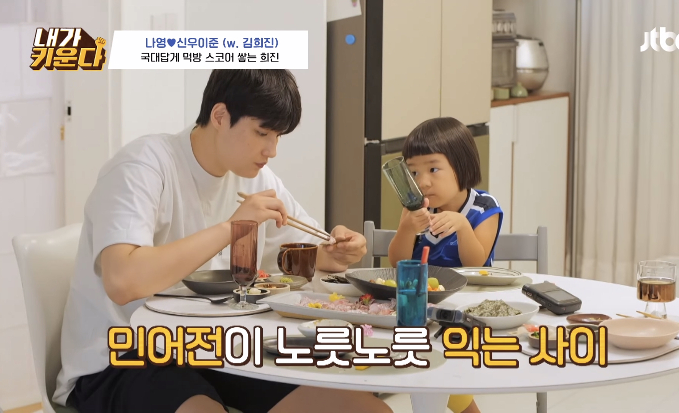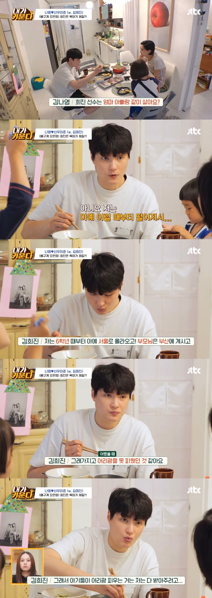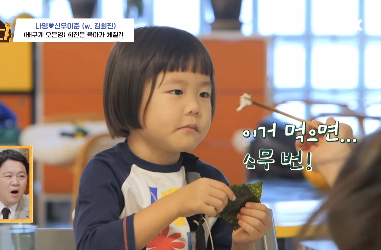 아이들은 한번씩 밥태기가 온다며 본인도 신우 나이때 밥태기가 너무 심해서 시리얼만 먹고 살았는데 유치원 들어가서 폭풍성장했다며 나영언니 도닥여주는 김희진 선수