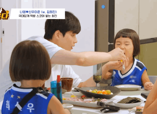 나영언니가 전 붙이는 동안에도 계속 아이들 밥 먹여줌