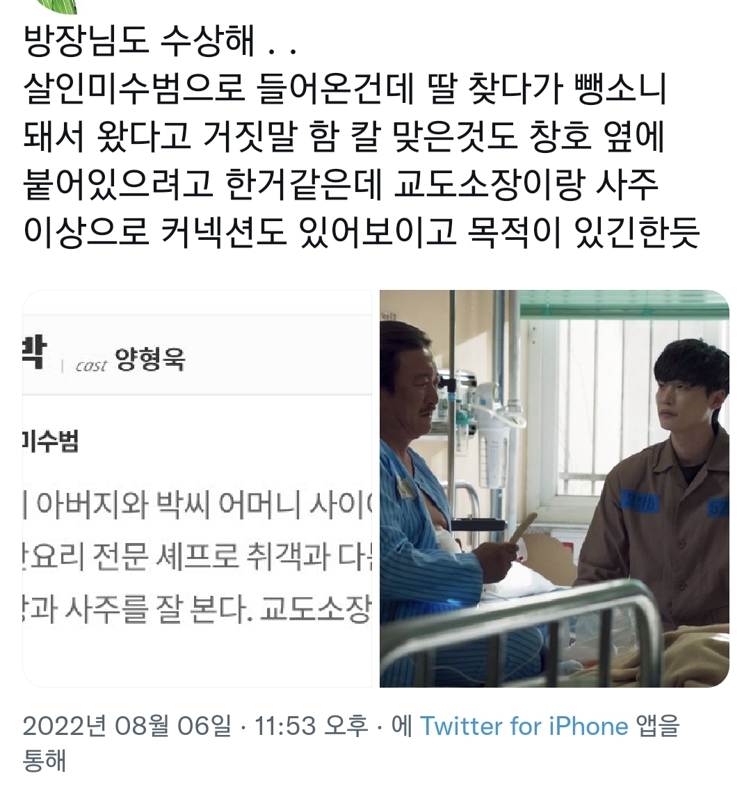 창호한테는 딸 찾다가 뺑소니 쳐서 들어왔다고 했었음