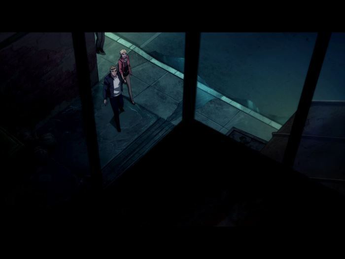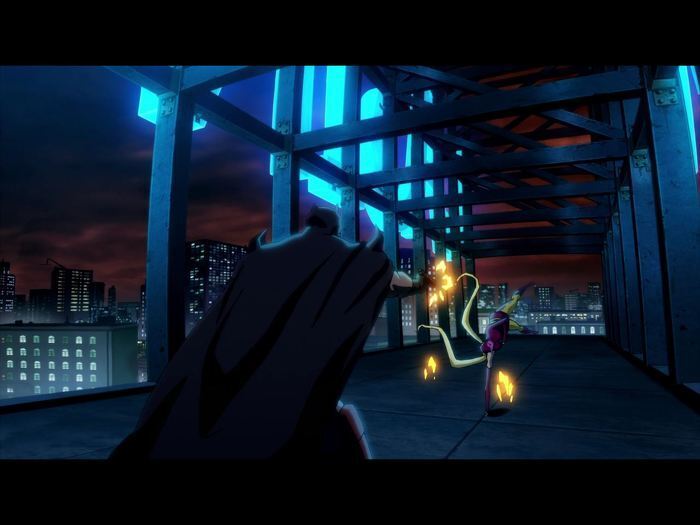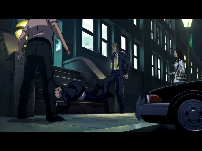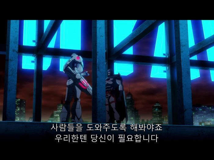 어딘가의 건물에서 배트맨이 범죄자를 잡고 있는데