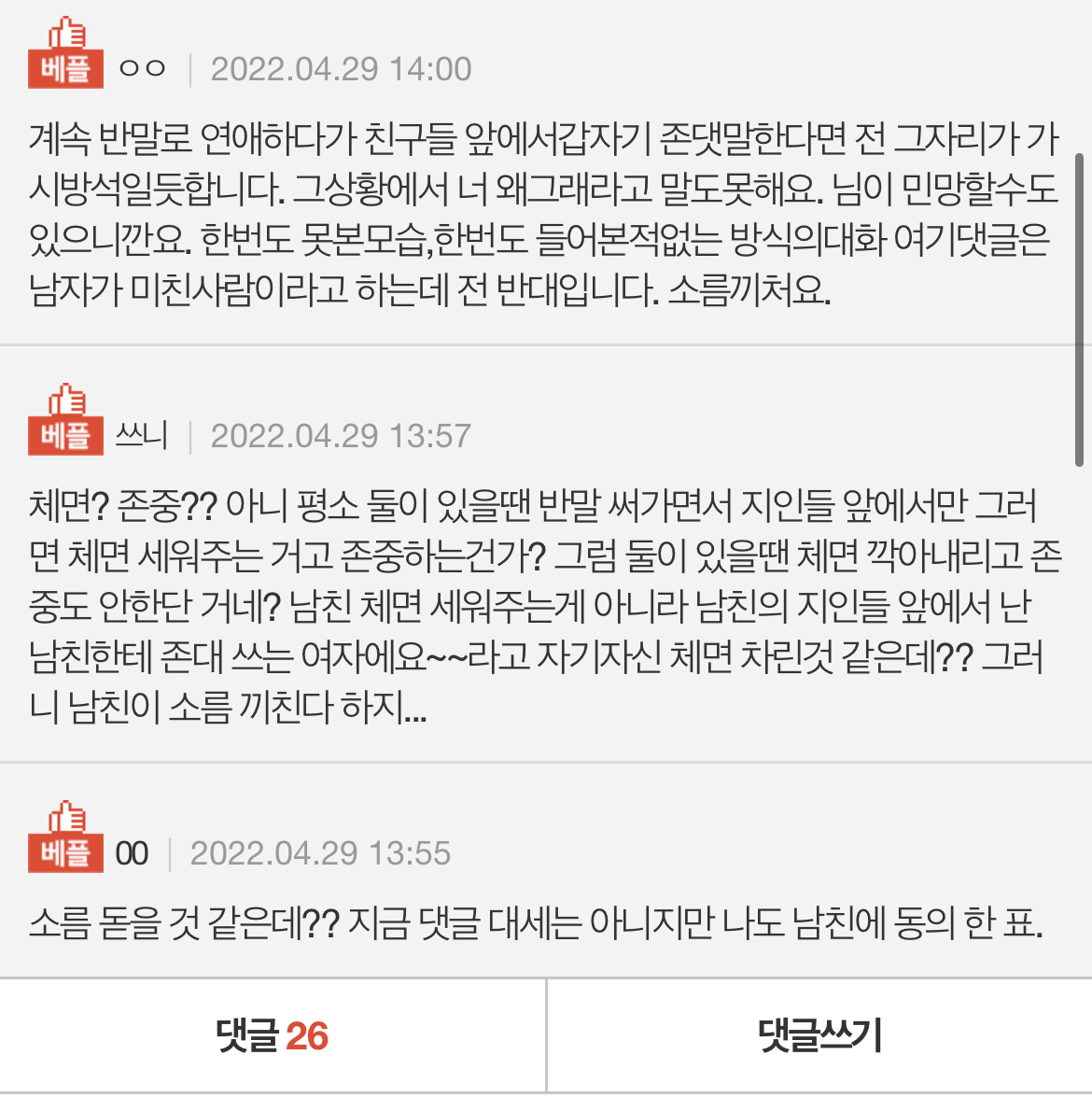 처음 존대를 한 순간 남자친구가 살짝 놀라는가싶더니 이내 표정이 안좋아지고 자리가 파할때까지 계속 표정이 안좋더라구요.