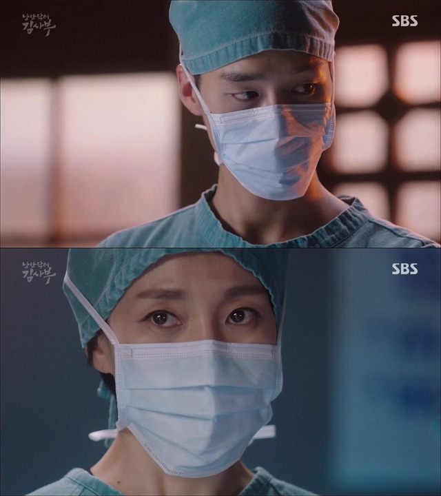 눈빛을 주고받는 김사부,윤서정