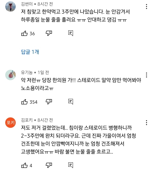 공통적인 댓글이 달리는 중임