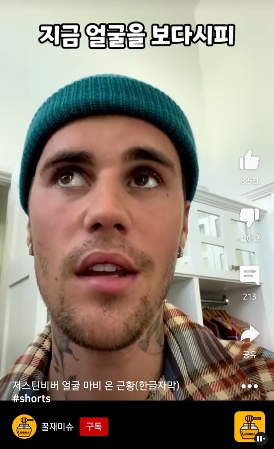 저스틴 비버가 안면마비가 왔는데