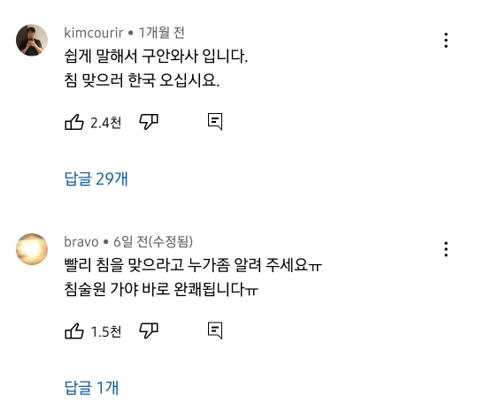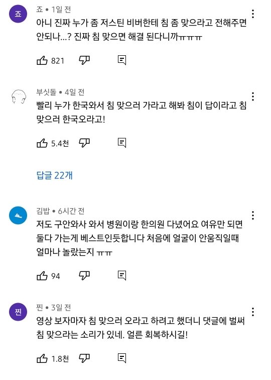 그 영상에 한국인들이 다들 한국와서 침맞으라는