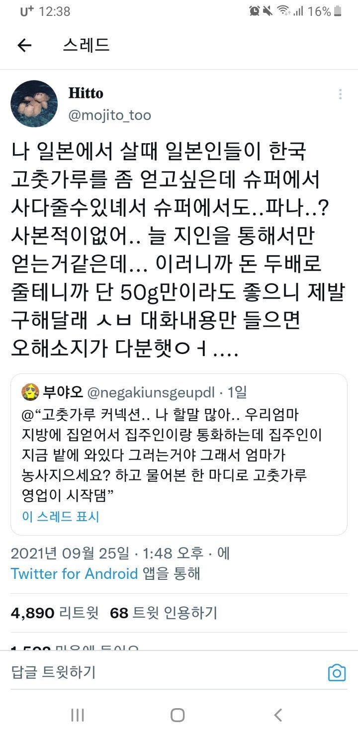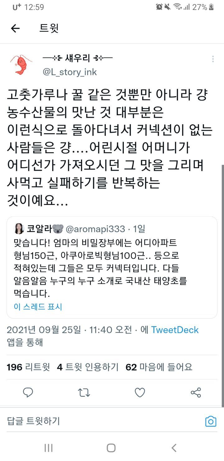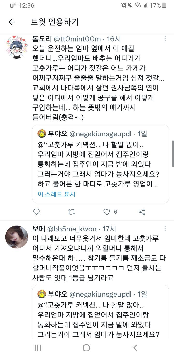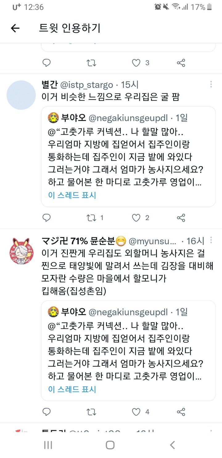 작성자에째래궤 작성시간 22.09.12 우리집도 참기름 들기름 고춧가루 고추장 된장 모두 외갓집 혹은 친할머니 루트통해서 얻어옴ㅋㅋㅋㅋ