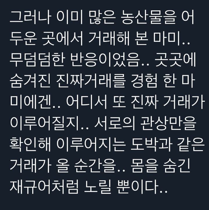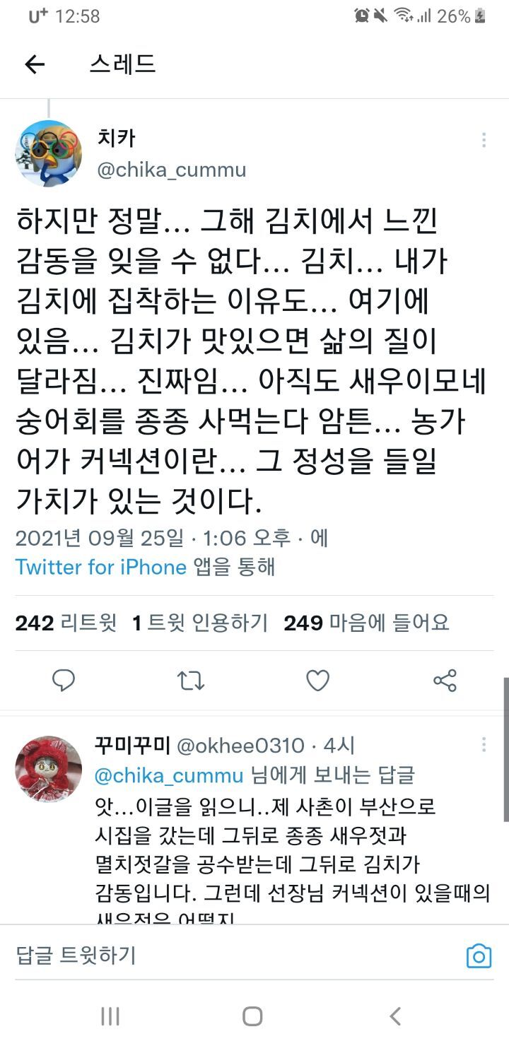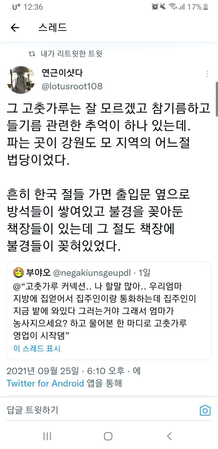 몇년 전에 늘 고추파시던 할머니가 타계한 해에 김치랑 반찬들이 아쉬웠던걸 기억하고 있으니 서운함보다는 이번에는 어느루트인지 물어봄 -