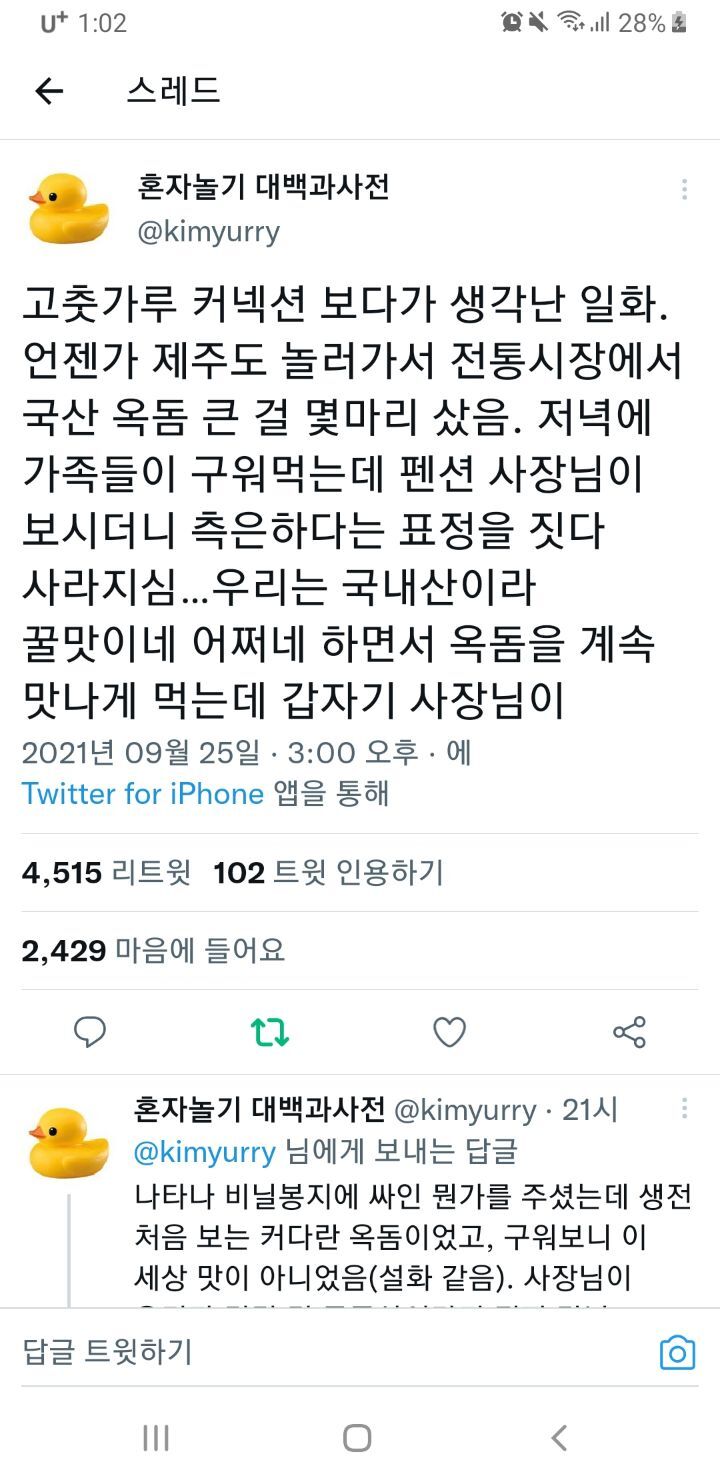 작성자몰매몰매 작성시간 22.09.12 엄마가 어제 무조건 나갔다와야한다며 태어난지 네달만에 집에온 손주랑 호메도 제대로 안보고 나가더니 고추를 어마어마하게 가져옴