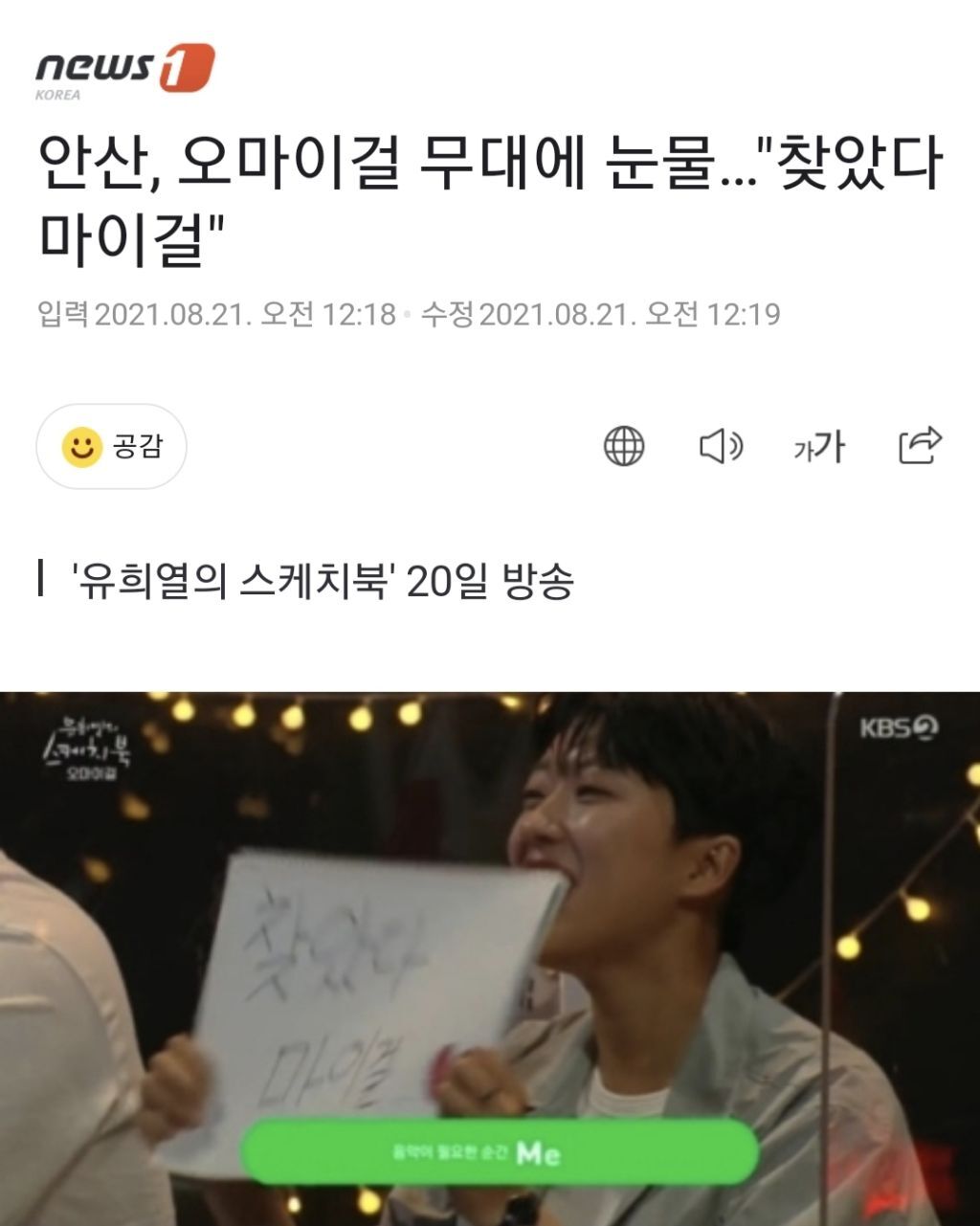 [스크랩] [흥미돋]유스케 오마이걸 던던댄스 무대 보다가 별안간 우는 안산 jpg 작성자꿀땅콩먹고찬물마시면설사함|작성시간22.09.11|조회수16,523 목록 댓글 21 글자크기 작게가 글자크기 크게가 출처 : https://n.news.naver.com/entertain/article/421/0005553864) 다음검색 스크랩 원문 : *여성시대* 차분한 20대들의 알흠다운 공간 현재 게시글 추가 기능 열기 북마크 공유하기 신고 센터로 신고 댓글 댓글 21 댓글쓰기 답글쓰기 댓글 리스트 작성자배불배불개구리 | 작성시간 22.09.12 귀여웡ㅠㅠㅠ 작성자mimmpd | 작성시간 22.09.12 너무 벅차오르잖아요 작성자털피치 | 작성시간 22.09.12 안산 좋아하는 그룹이 왤케많냐고ㅋㅋㅋㅋㅋ 작성자생크림 식빵 | 작성시간 22.09.12 본업하는 산이는 차분하지만 평소의 산이는 오딱구라 벅차올라서 우는거야!!! 이미지 확대 작성자서글픈고양이 | 작성시간 22.09.12 아ㅠㅠㅋㅋㅋㅋㅋ미친ㅋㅋㅋ귀여워 댓글 전체보기