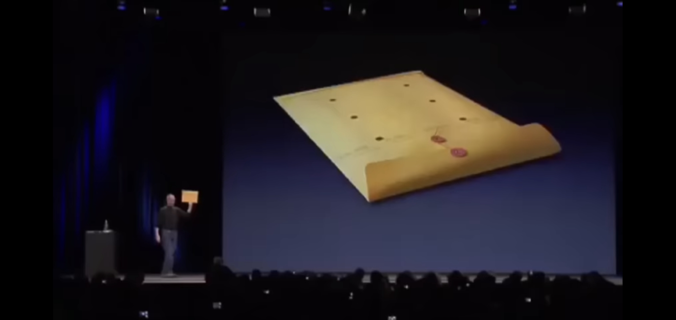 그리고 스티브잡스가 서류봉투를 들자 사람들이 웃음