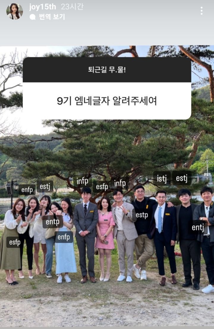 [스크랩] [흥미돋]나는솔로 전설의 9기 mbti 정리....jpg 작성자살려줘시바|작성시간22.09.12|조회수37,133 목록 댓글 31 글자크기 작게가 글자크기 크게가 출처 : 여성시대 우산필수pd가 9기 찍다가 존나 재밌어서이 멤버로만 6월부터 8월까지 방영해버림나솔 최고시청률까지 기록+ 9기 옥순 피셜나는솔로는 대본이 아예 없다고 함 다음검색 스크랩 원문 : *여성시대* 차분한 20대들의 알흠다운 공간 현재 게시글 추가 기능 열기 북마크 공유하기 신고 센터로 신고 댓글 댓글 31 댓글쓰기 답글쓰기 댓글 리스트 작성자크리넥시 | 작성시간 22.09.13 t남들은 들러리만 서다가 갔넼ㅋㅋ 작성자김서누 | 작성시간 22.09.16 와 ㅅㅂ 짖짜 광수 인프피엿네 작성자탓카루비 | 작성시간 22.10.05 infp 작성자미냐오 | 작성시간 23.09.07 원래 10, 16기가 레전드라하잖아 9기도재미써?! 작성자열라면짱 | 작성시간 23.09.07 Istj가 왜??? 댓글 전체보기