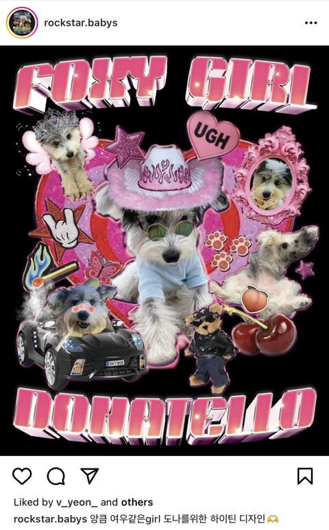 주로 반려동물 사진으로 저런 락밴드 스타일 티셔츠