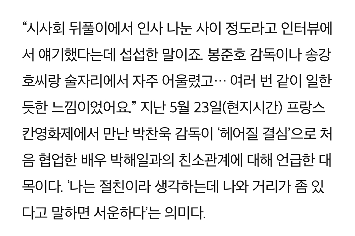 전도연 - 옆에 있는데도 속으로 무슨 생각하는지 짐작이 안간다 (박해일 - 아무 생각도 안했다)
